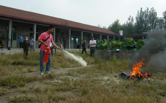 參加此次演練的有生產(chǎn)副總鄭理、技術(shù)副總苗海濱、安環(huán)部負(fù)責(zé)人葛業(yè)成、保溫廠廠長(zhǎng)楊圣勇及其他相關(guān)工作人員。安環(huán)部主要負(fù)責(zé)人在現(xiàn)場(chǎng)給大家講解了如何識(shí)別滅火器的壓力表指示、如何識(shí)別滅火器有無(wú)過(guò)期等一些消防知識(shí)。參加人員依照演練程序,布置演練現(xiàn)場(chǎng),先示范滅火,再依次操作滅火,成功進(jìn)行了消防演練。