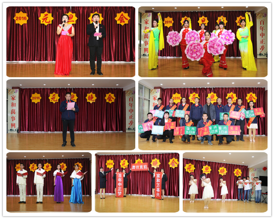 下午16:30,中正集團(tuán)2016年“百年中正夢,家和萬事興”元旦晚會拉開帷幕。精彩的開場舞《家和萬事興》之后,集團(tuán)副總經(jīng)理王曉東代表董事會致新年賀詞,對過去的一年進(jìn)行簡單回顧,表達(dá)了對新年的美好祝愿。晚會節(jié)目精彩紛呈,詩歌朗誦、歌曲、舞蹈、互動游戲輪流登場,讓人目不暇接。晚會結(jié)束前,集團(tuán)董事長李廣法、集團(tuán)副總經(jīng)理葉恒剛、王曉東對本年度11名優(yōu)秀員工進(jìn)行表彰。最后,以手語舞蹈《感恩的心》結(jié)束了本屆晚會,獲得了圓滿成功。